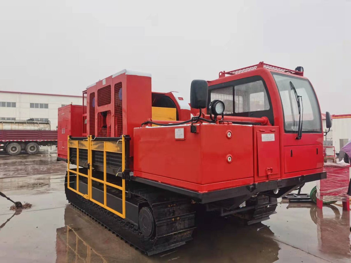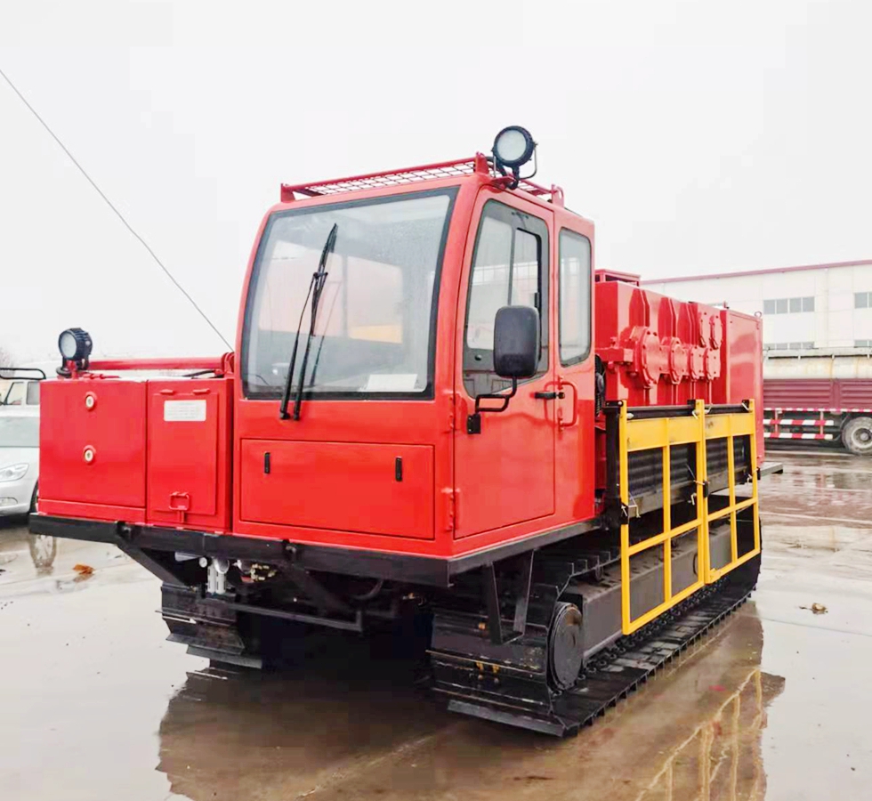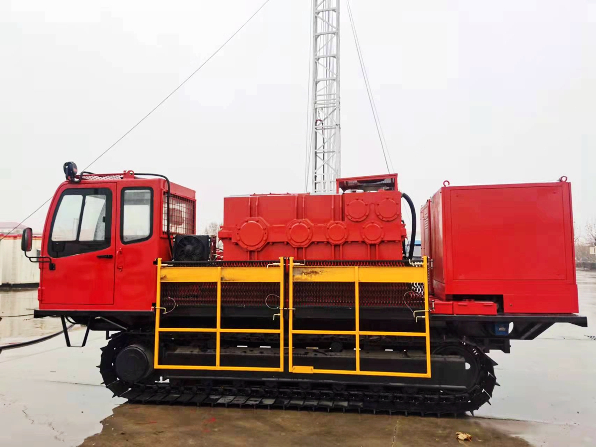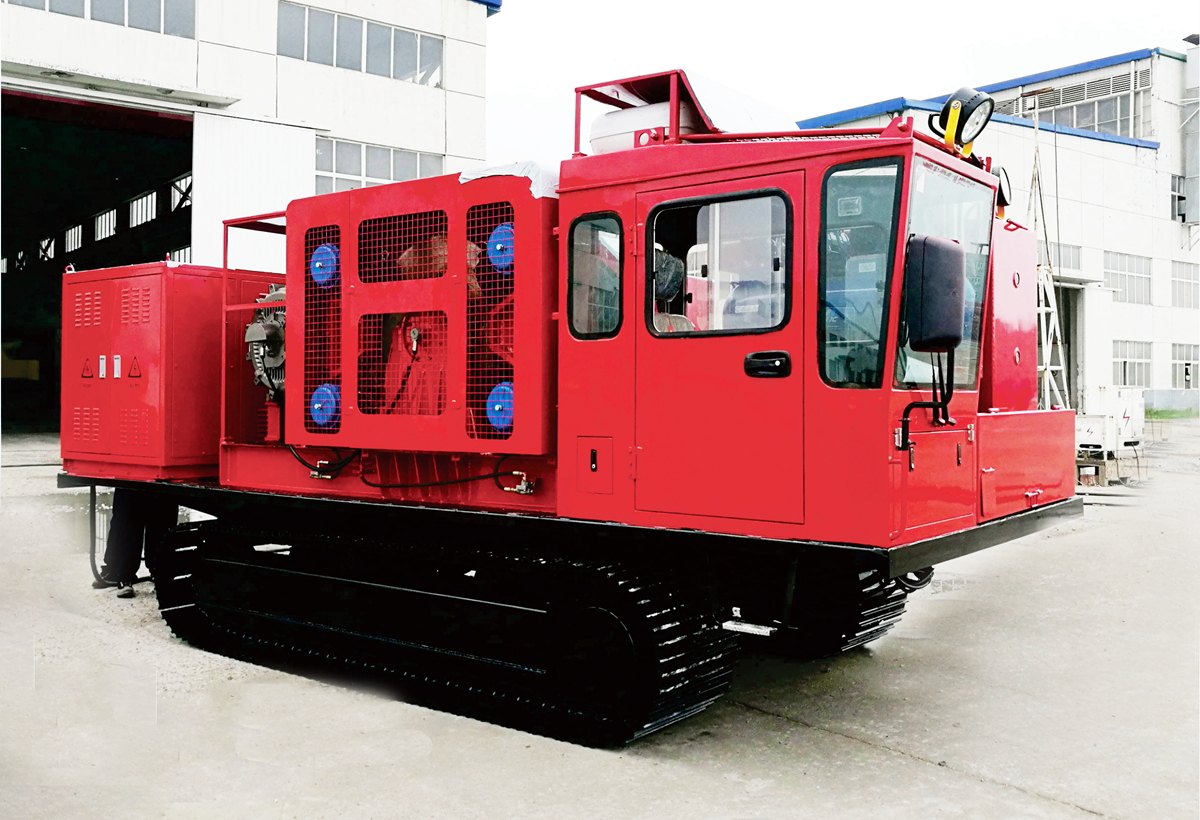 全新一代履帶式通井機,將電動絞車、電控系統、動力電池組、駕駛室等部件集成了液壓履帶底盤,適用于泥濘、坑洼等路況不好的井場修井作業。